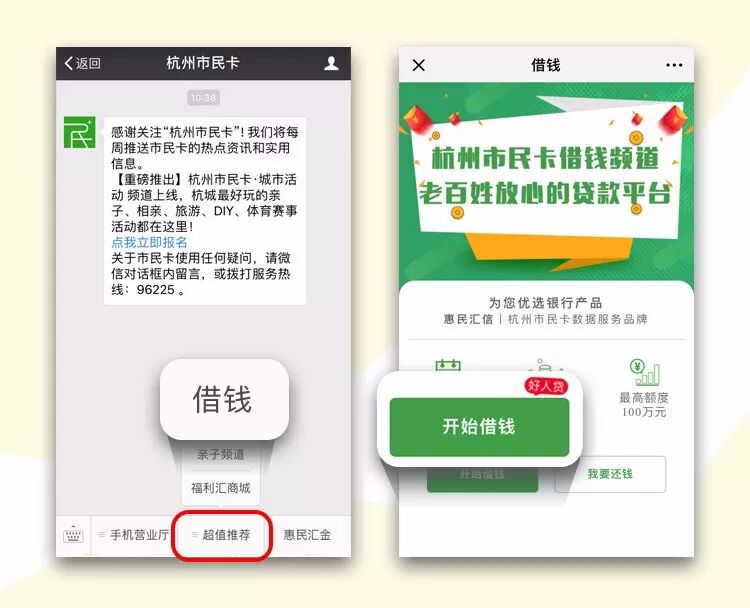 杭州市民卡微信“借钱”频道
